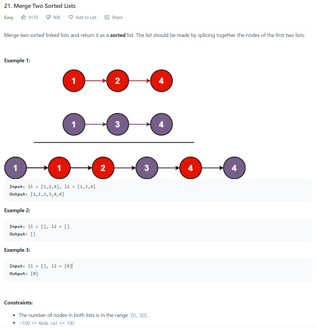 LeetCode 풀기 - 21. Merge Two Sorted Lists 본문