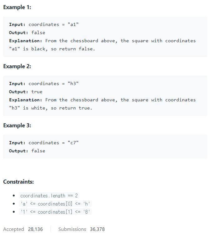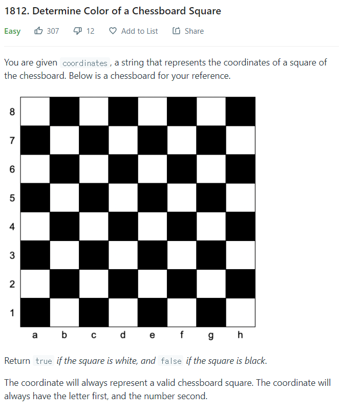 LeetCode 풀기 - 1812. Determine Color of a Chessboard Square 본문