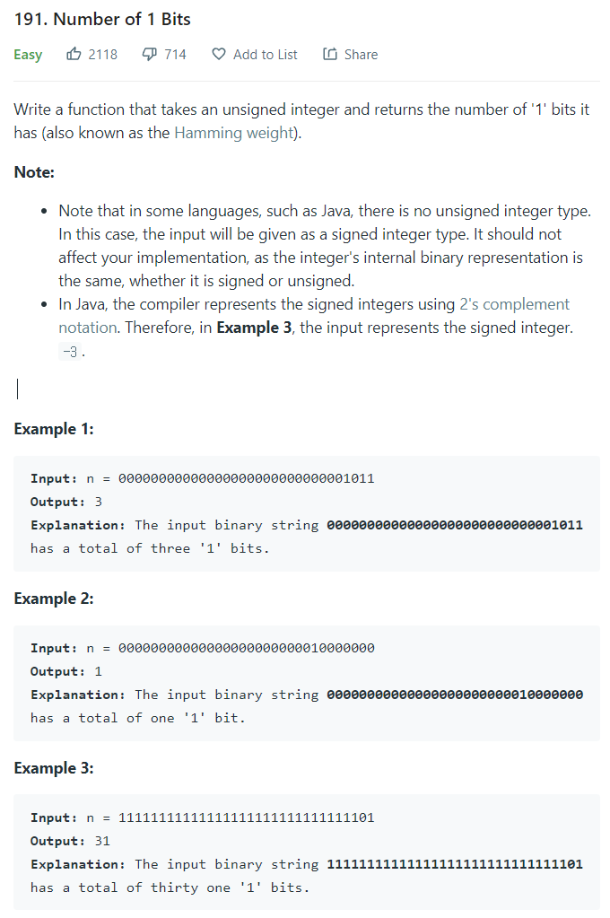 Number of 1 Bits - LeetCode