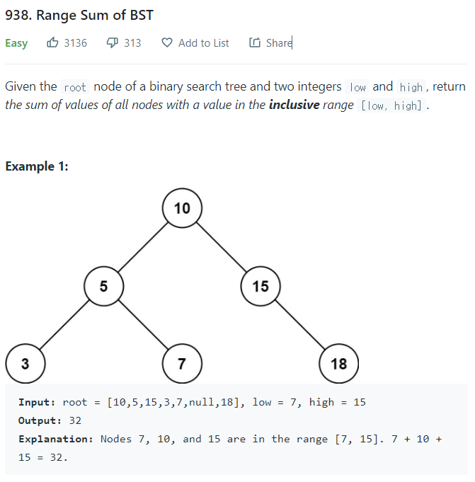 LeetCode 풀기 - 938. Range Sum of BST 본문