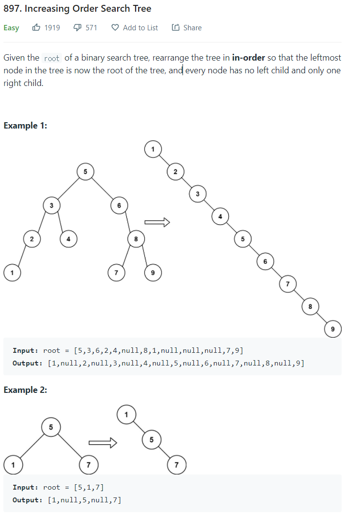 LeetCode 풀기 - 897. Increasing Order Search Tree 본문