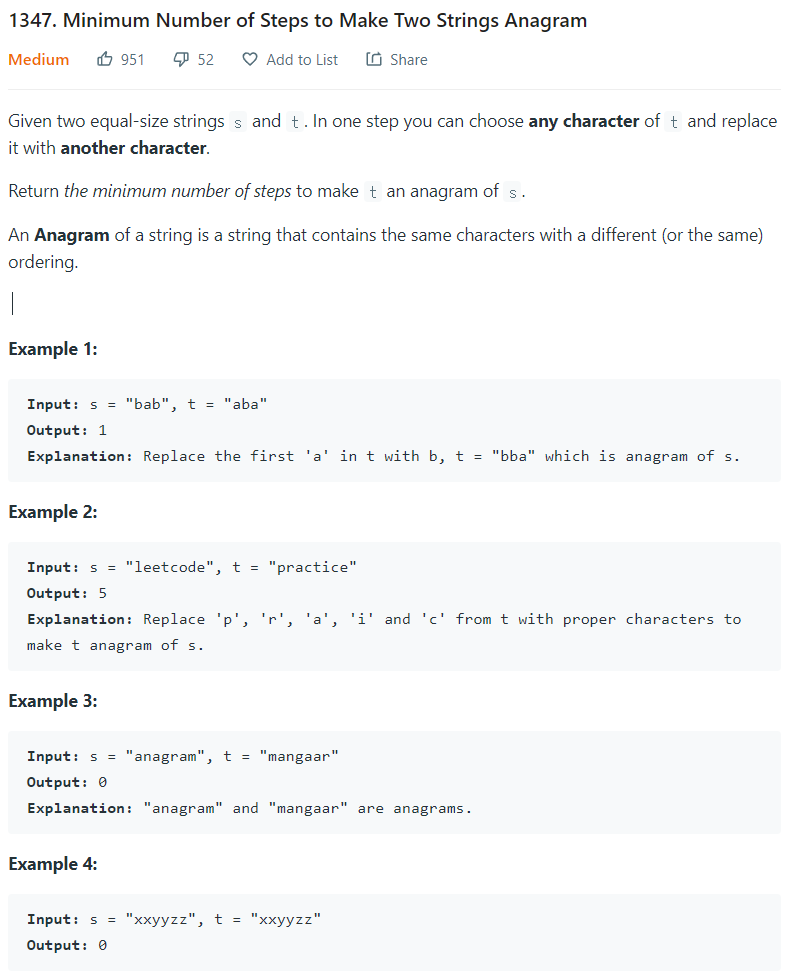 https://leetcode.com/problems/minimum-number-of-steps-to-make-two-strings-anagram/