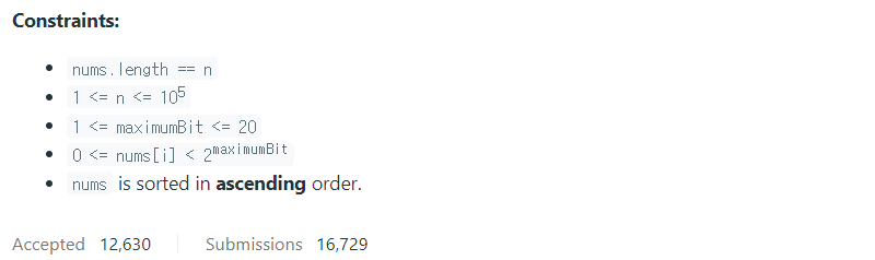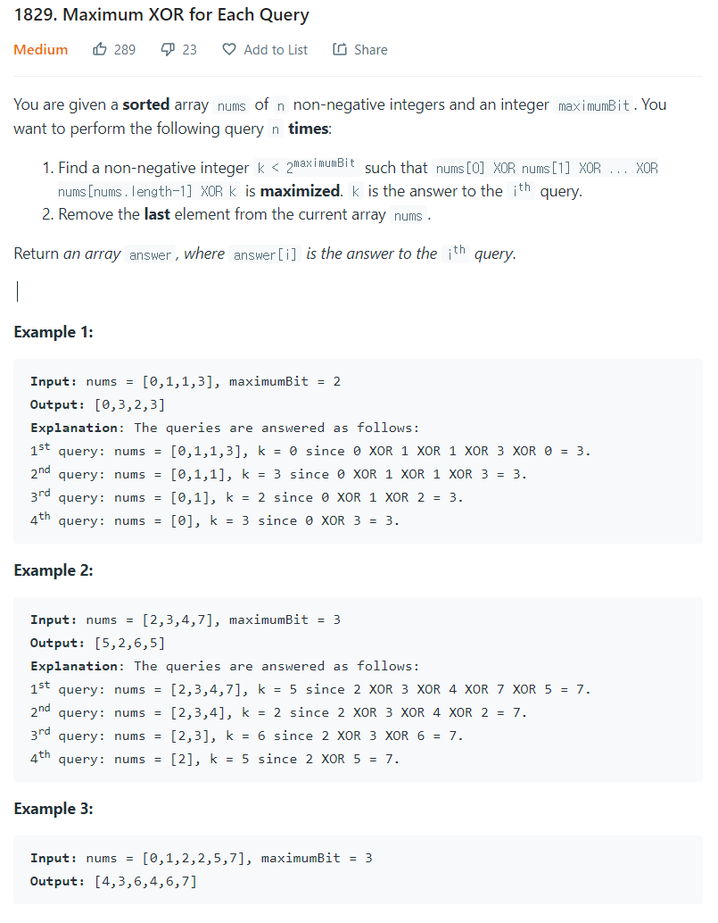 LeetCode 풀기 - 1829. Maximum XOR for Each Query 본문