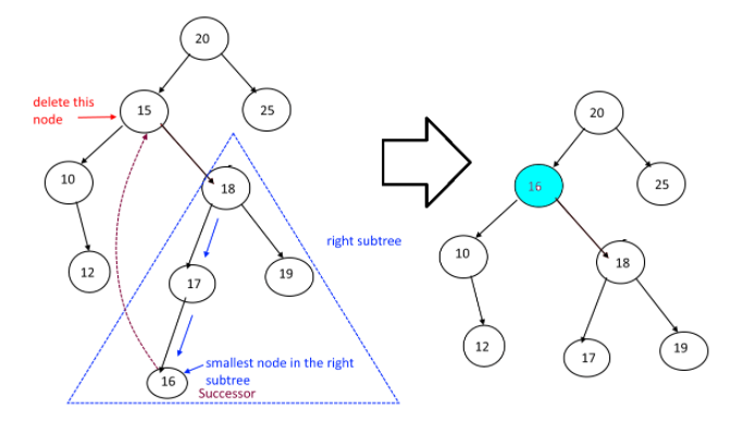 case 2 : 삭제할 노드의 오른쪽 자식이 없는 경우