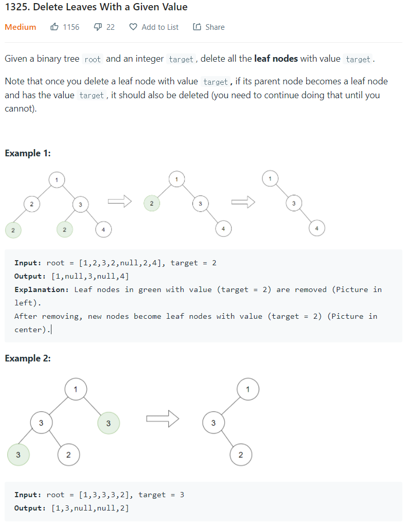 https://leetcode.com/problems/delete-leaves-with-a-given-value/