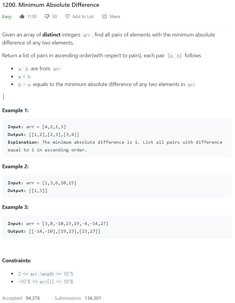 LeetCode 풀기 - 1200. Minimum Absolute Difference 본문