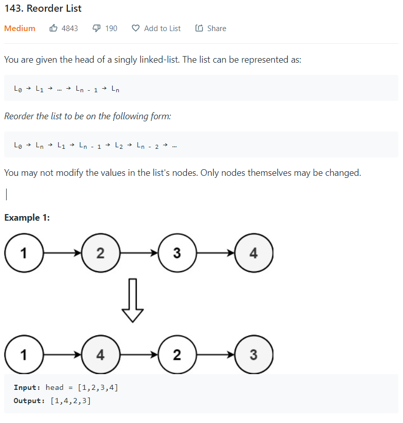 LeetCode 풀기 - 143. Reorder List 본문