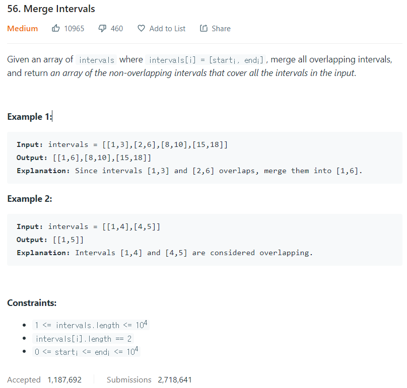 LeetCode 풀기 - 56. Merge Intervals 본문