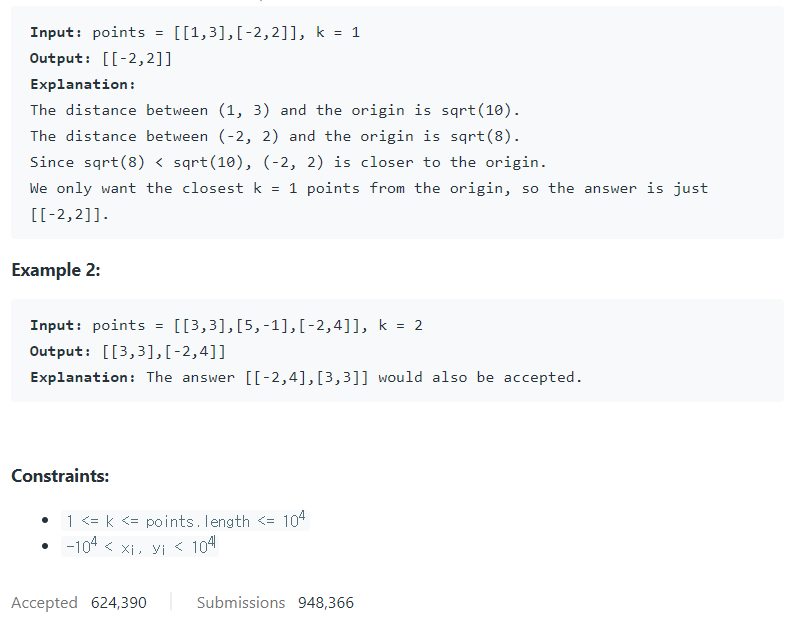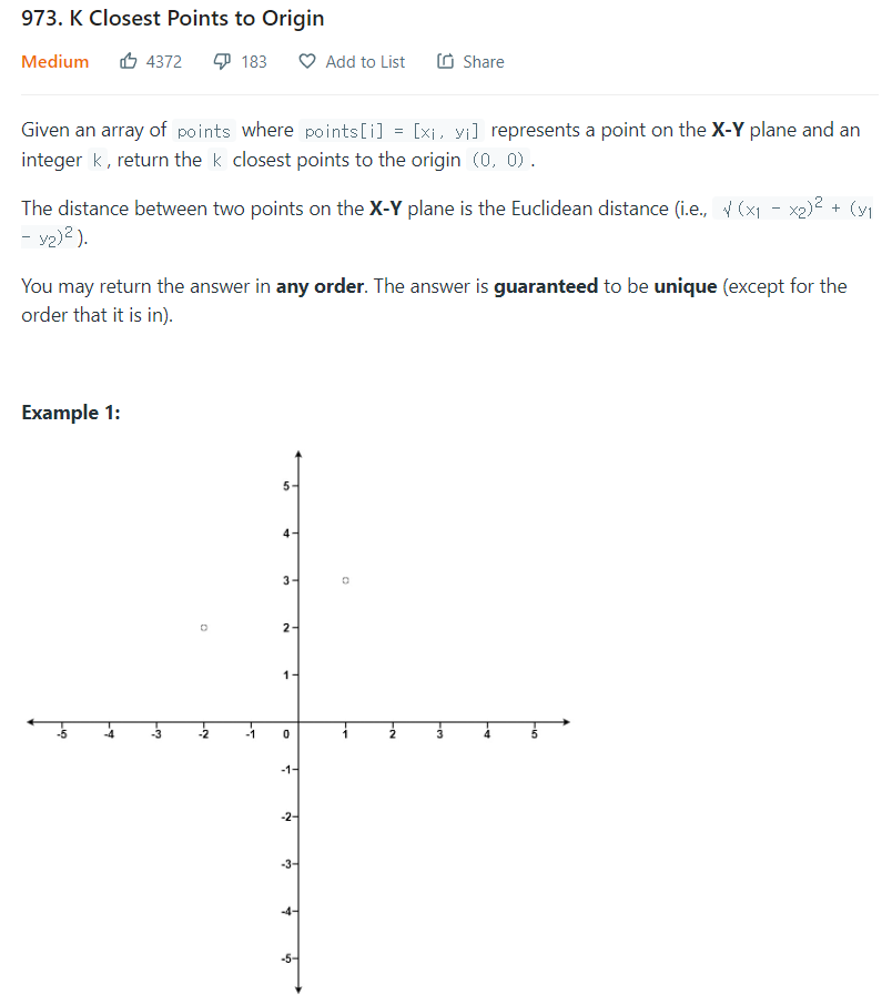 K Closest Points to Origin - LeetCode