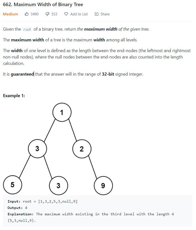 LeetCode 풀기 - 662. Maximum Width of Binary Tree 본문