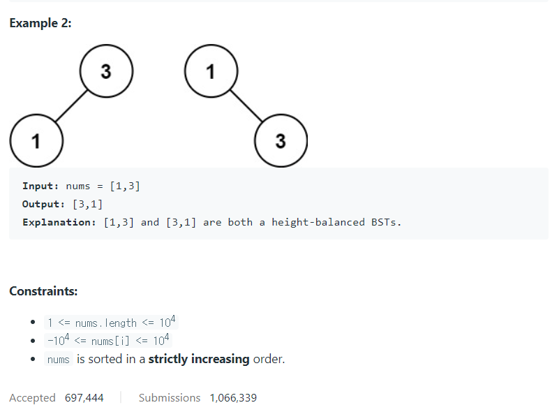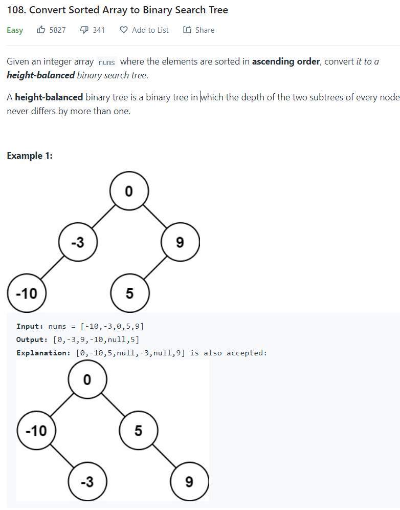 LeetCode 풀기 - 108. Convert Sorted Array to Binary Search Tree 본문