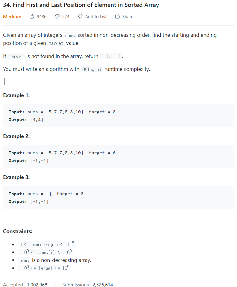 LeetCode 풀기 - 34. Find First and Last Position of Element in Sorted Array 본문