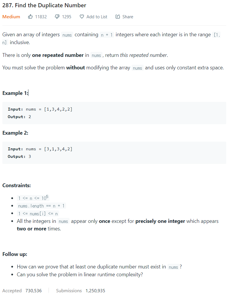 https://leetcode.com/problems/find-the-duplicate-number/