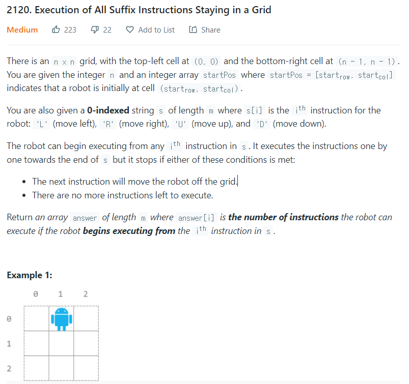 Execution of All Suffix Instructions Staying in a Grid - LeetCode