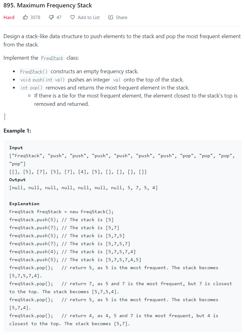 LeetCode 풀기 - 895. Maximum Frequency Stack 본문