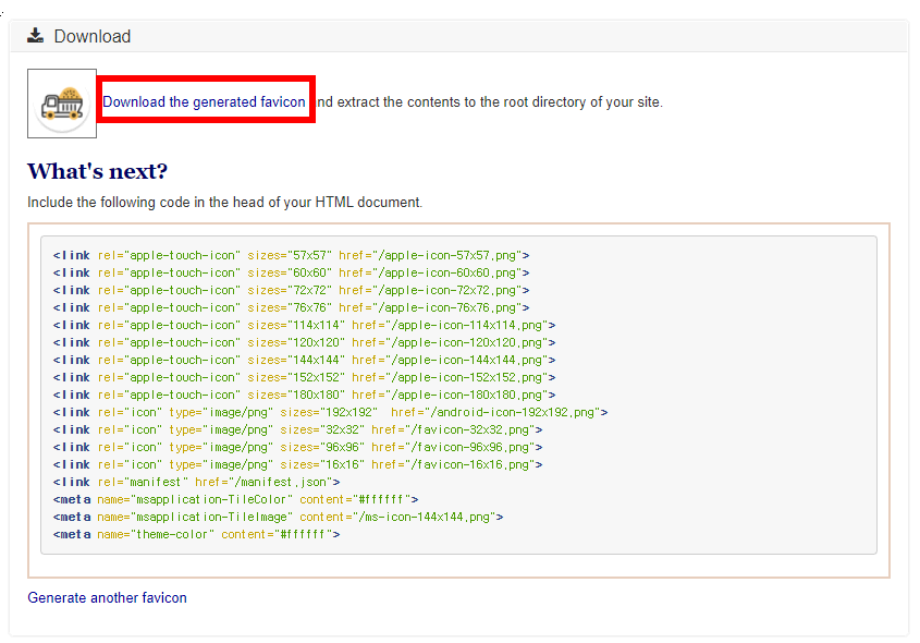 이미지 파일 선택 후 "create favicon" 선택