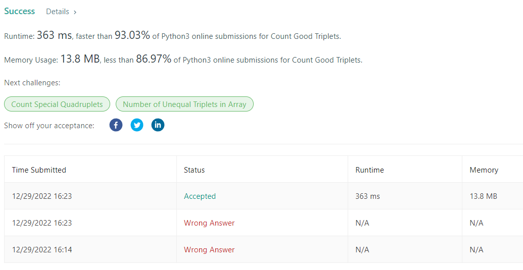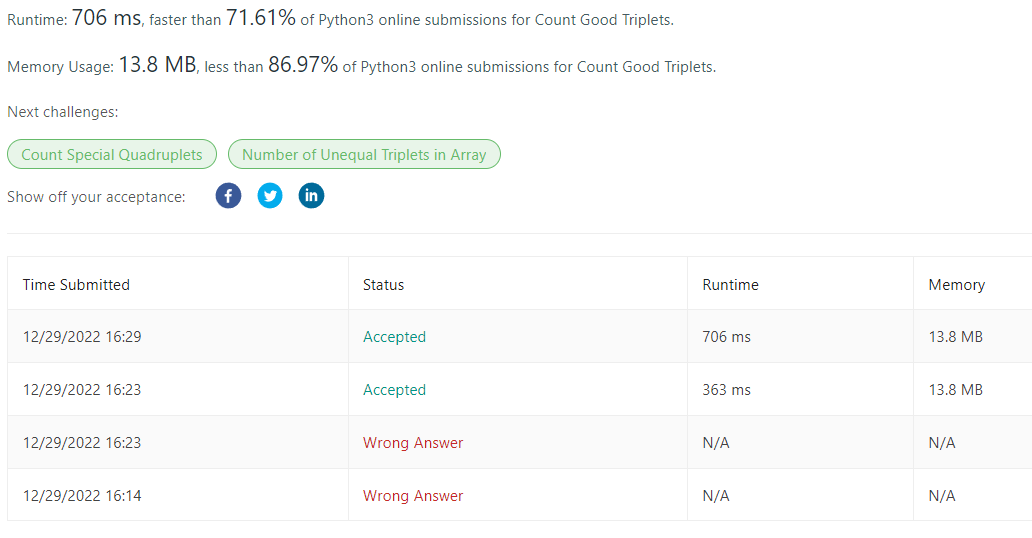 1534. Count Good Triplets 본문
