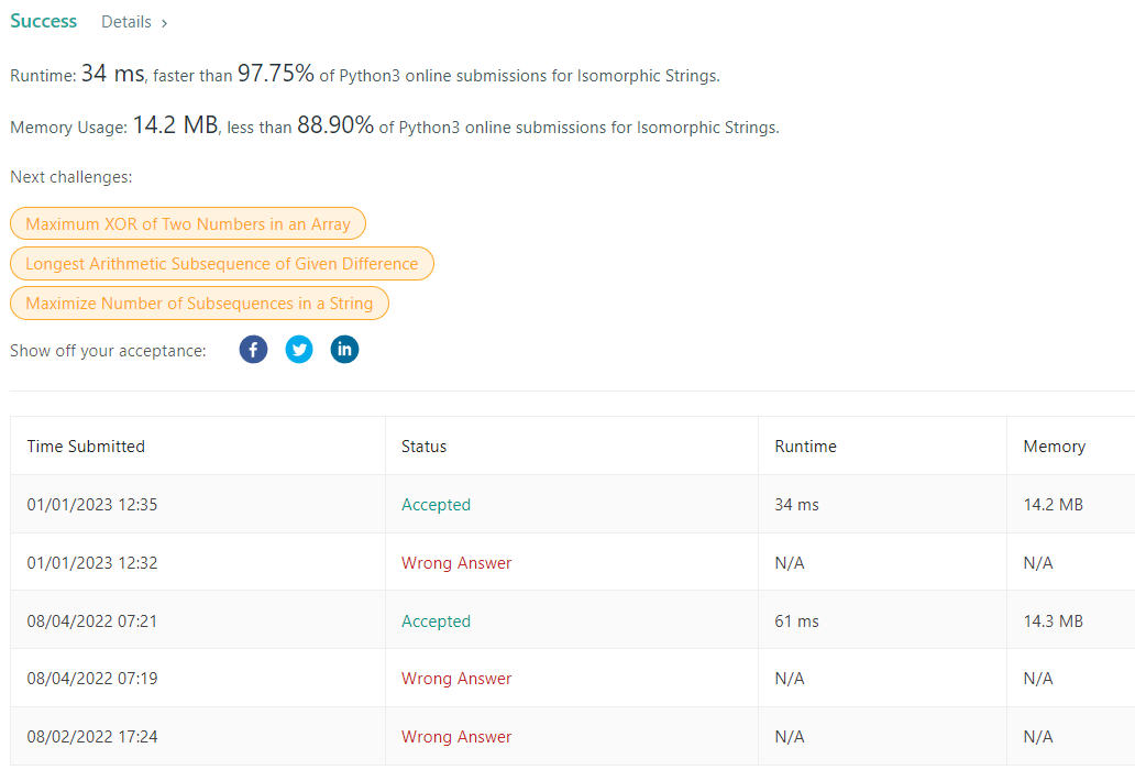 유사 문제, 205. Isomorphic Strings 문제 또한 동일한 접근법으로 문제 풀이 가능