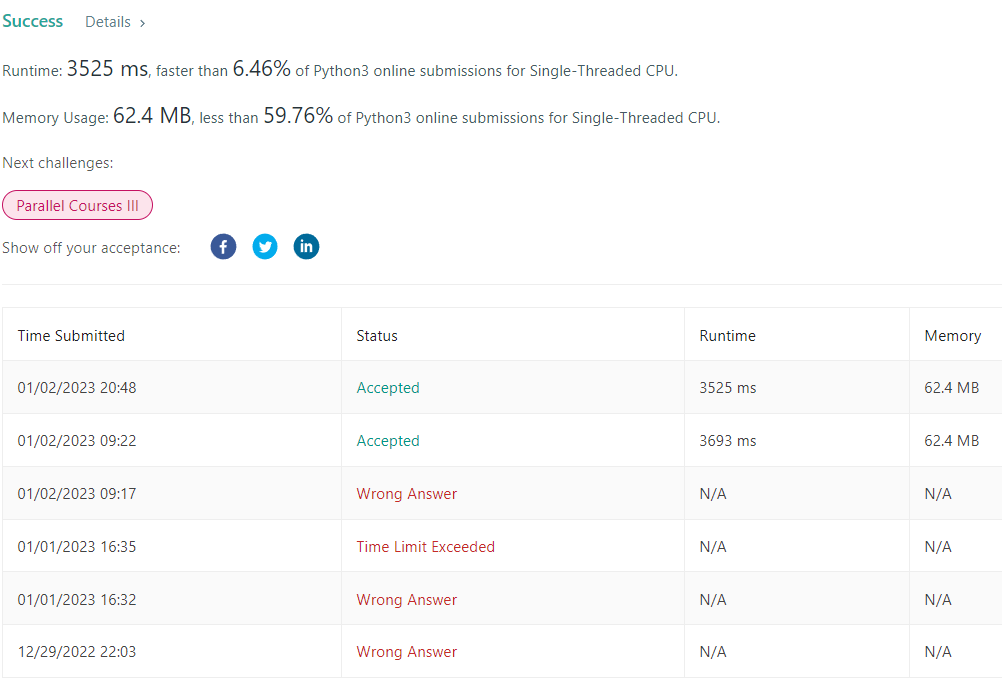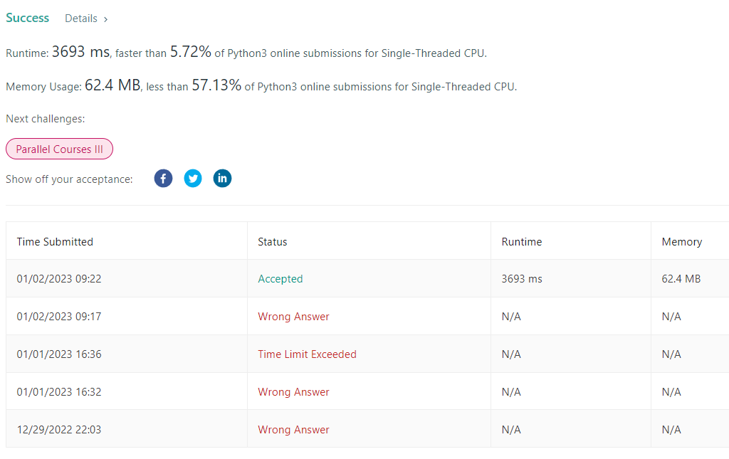 - TLE는 발생하지 않고 Success는 했지만 여전히 하위 5.72%f로 개선 여지가 많음