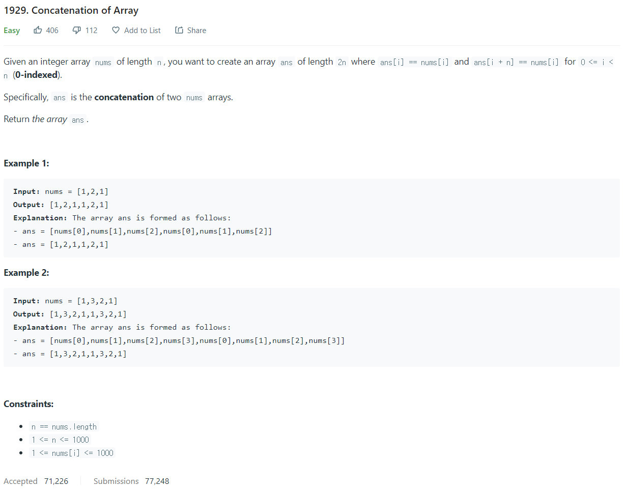 LeetCode 풀이 - 1929. Concatenation of Array 본문