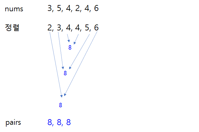 pairs.append(nums[i] + nums[len(nums) - 1 - i])