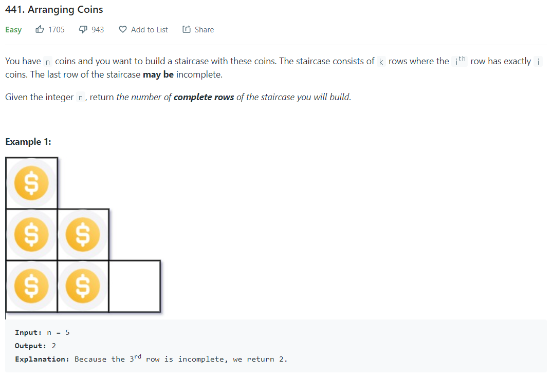 LeetCode 풀기 - 441. Arranging Coins 본문