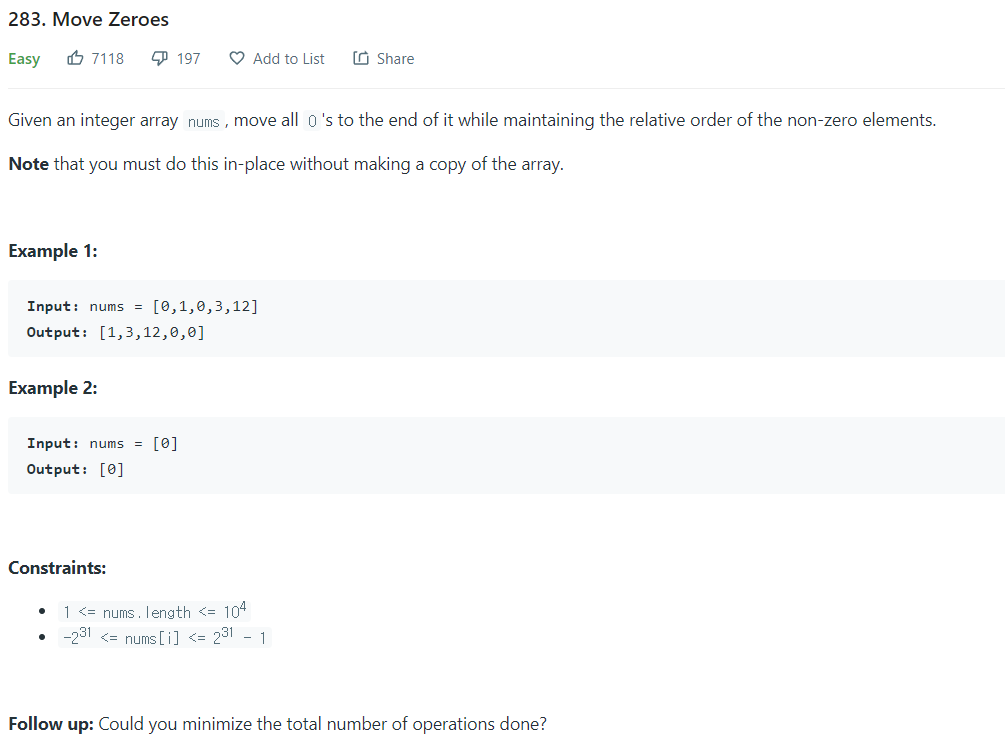 LeetCode 풀기 - 283. Move Zeroes 본문