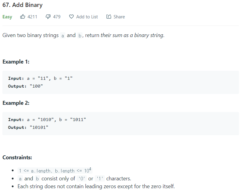 Add Binary - LeetCode